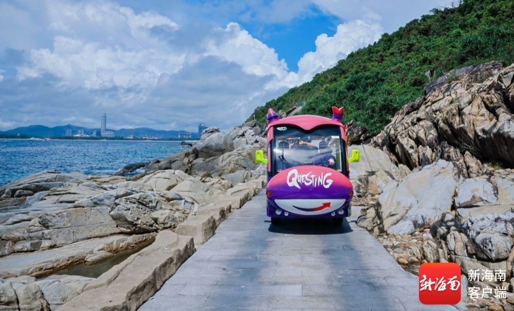 海南旅游國際推薦官搭乘環島觀光車游覽蜈支洲島。記者 李昊 攝