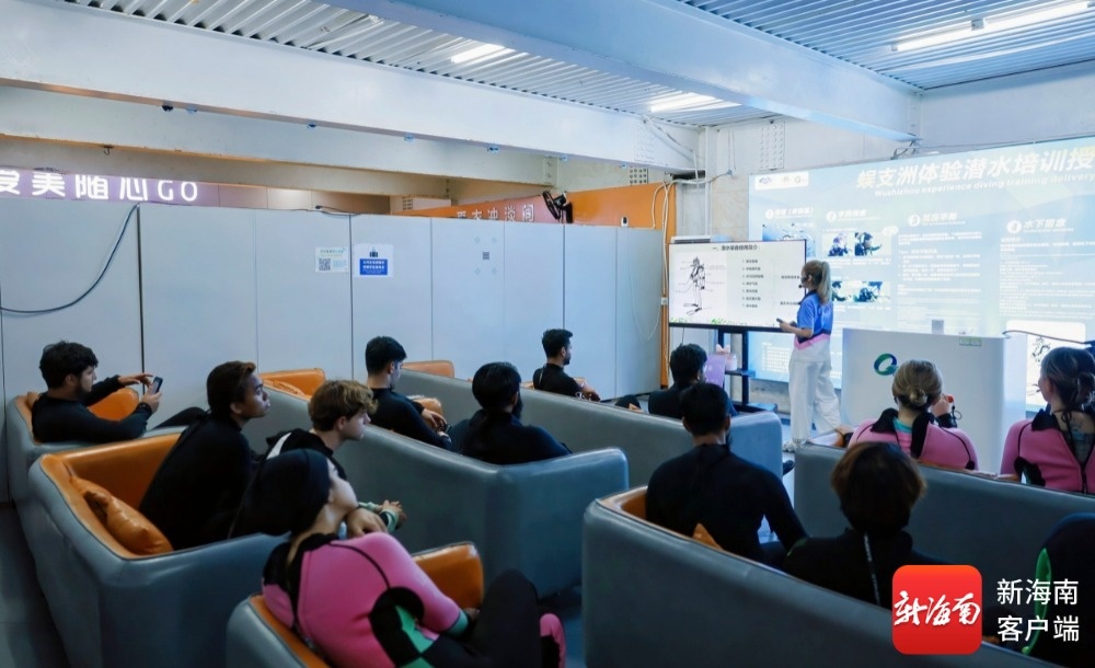 海南旅游國際推薦官體驗潛水項目前進行集中培訓。記者 李昊 攝