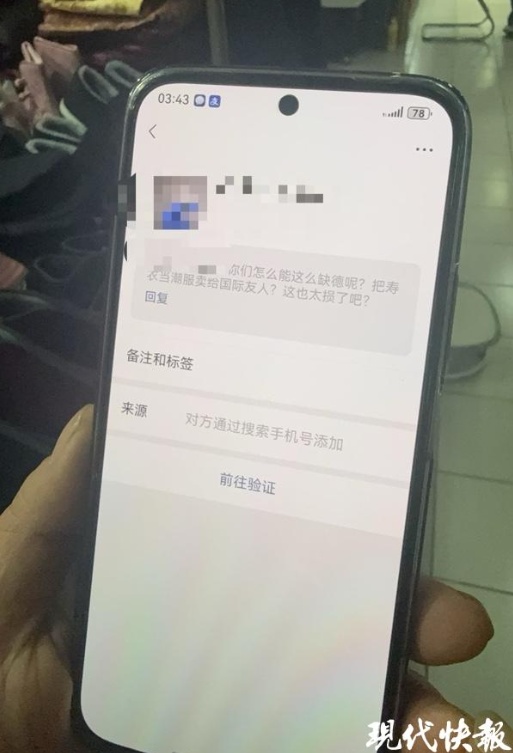 隨后,事情的發展讓耿女士也很無奈。網友拍攝的視頻中,暴露了她的店名和聯系方式,導致她的手機都快被打爆。耿女士一個上午接到了300多個電話,有一些人還要求加她的微信,然后就是各種辱罵、指責,說她把死人用品賣給外國人“缺德”。