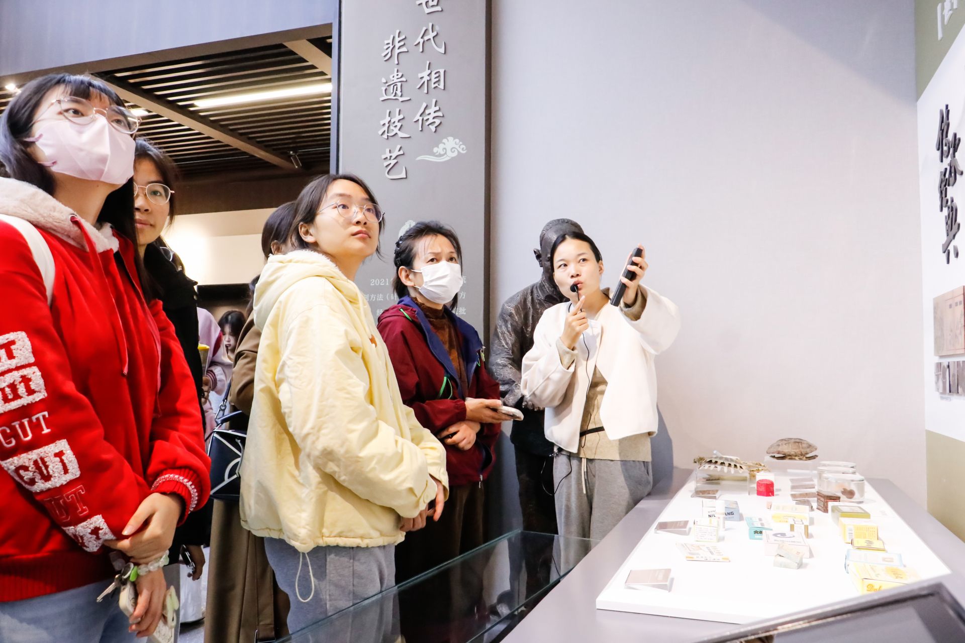 走進中醫藥文化博物館,同學們瞬間變成了“好奇寶寶”。“袁老師,這個器具是做什么用的?”“這味藥有什么特別的故事嗎?”大家圍著袁雨姣問個不停。從“修合雖無人見,存心自有天知”的誠信,到“寧缺毋濫”的匠心,先輩制藥人的職業操守讓同學們深受觸動。