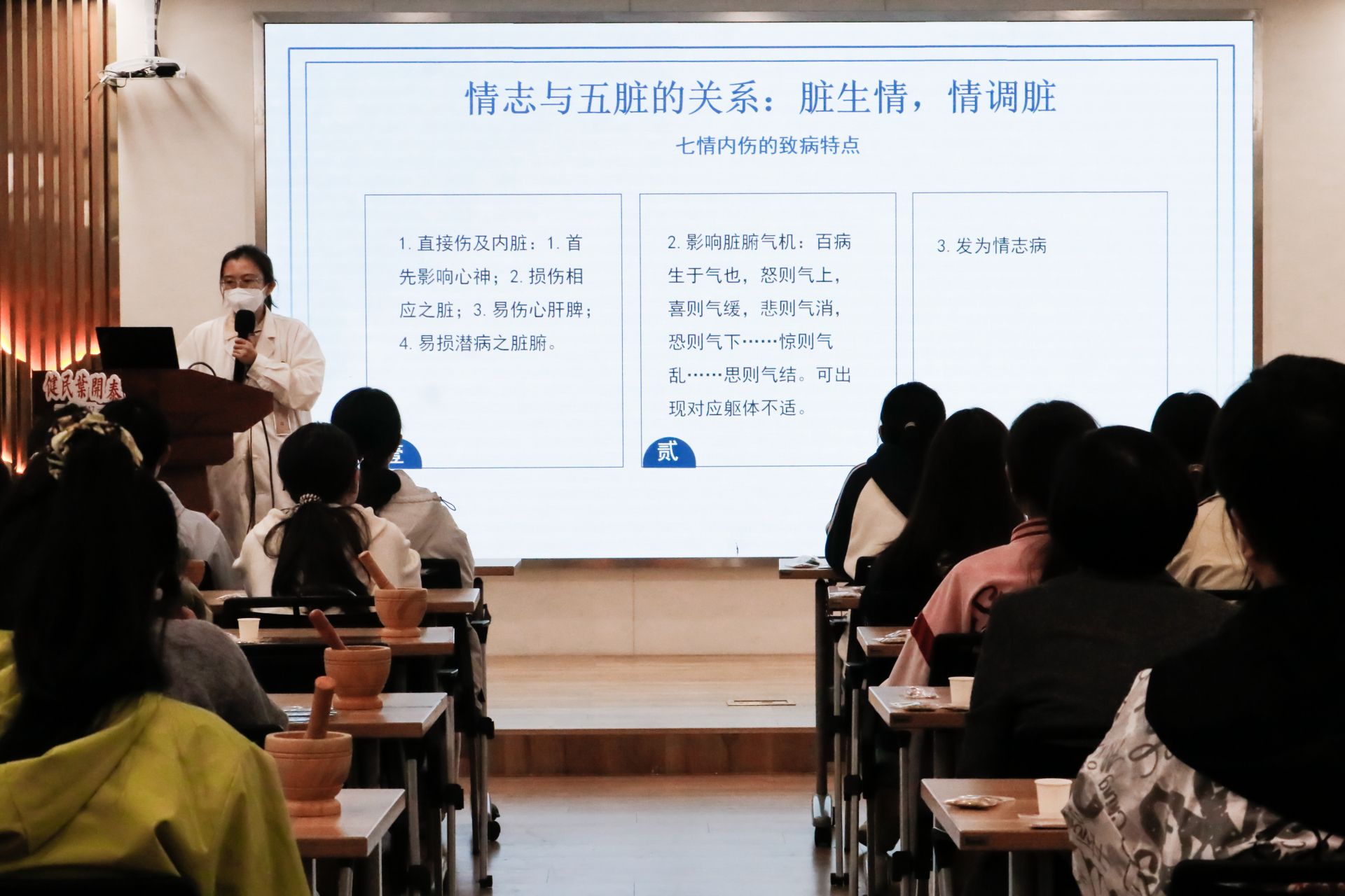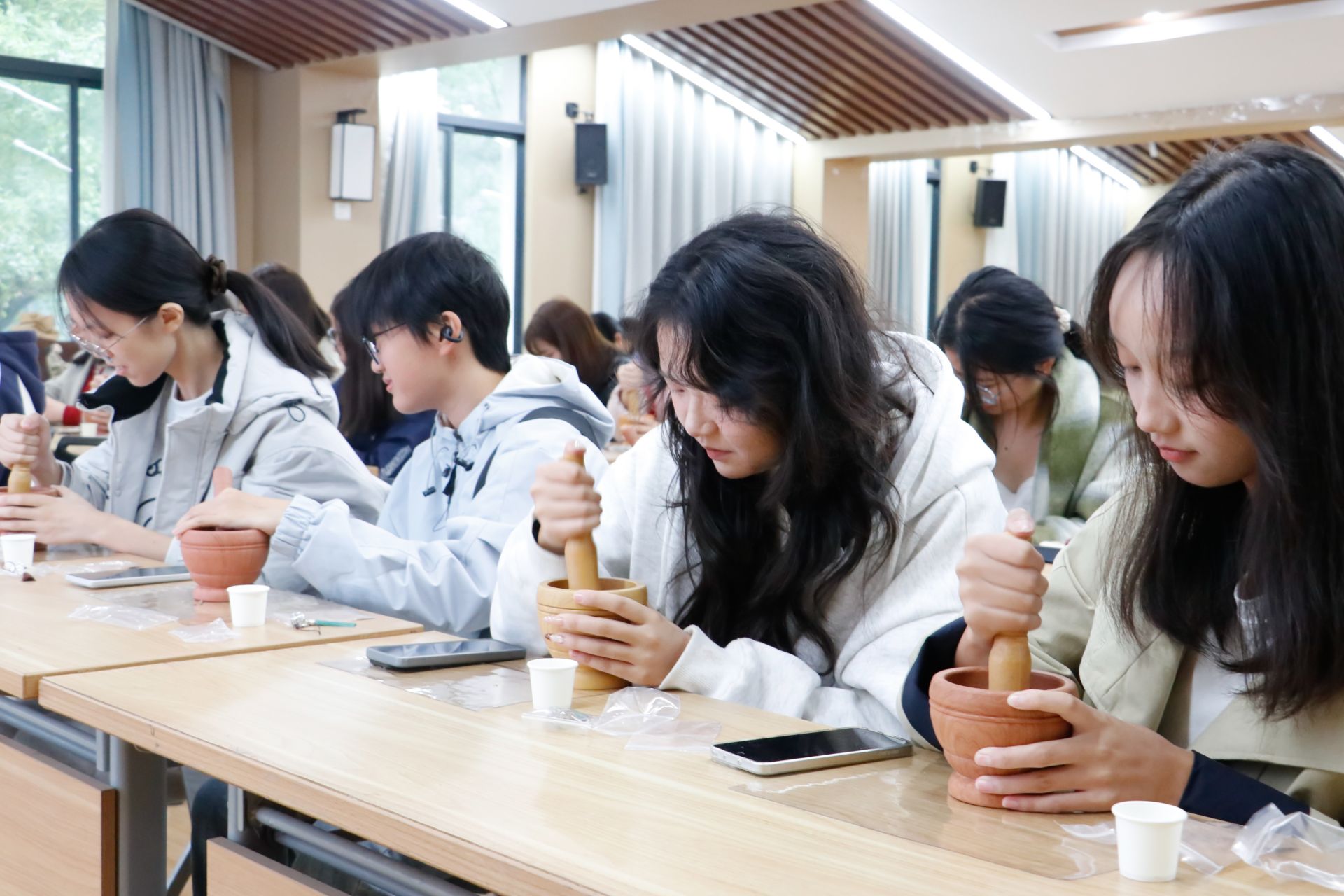 “原來情緒真的會影響健康!”肖萱醫生帶來的情志與五臟課,讓大家恍然大悟。結合這堂實用養生課,袁雨姣則手把手教同學們制作疏肝解郁的冷香丸。大家興致勃勃,搗棒與缽子的碰撞聲此起彼伏,“沒想到搗花這么費勁!”大家一邊說笑著,一邊認真研磨。當香丸終于成型的那一刻,成就感寫滿了每個人的笑臉。