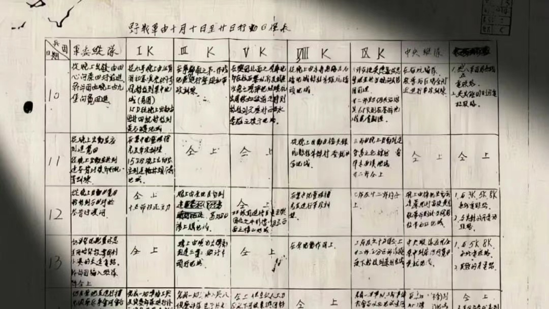 《野戰(zhàn)軍由十月十日至二十日行動(dòng)日程表》,這是紅軍長(zhǎng)征發(fā)布的第一份行動(dòng)計(jì)劃。