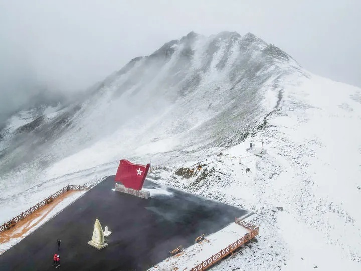 位于四川夾金山海拔4114米埡口的紅色主題文化景觀。新華社發(fā)(郝立藝 攝)