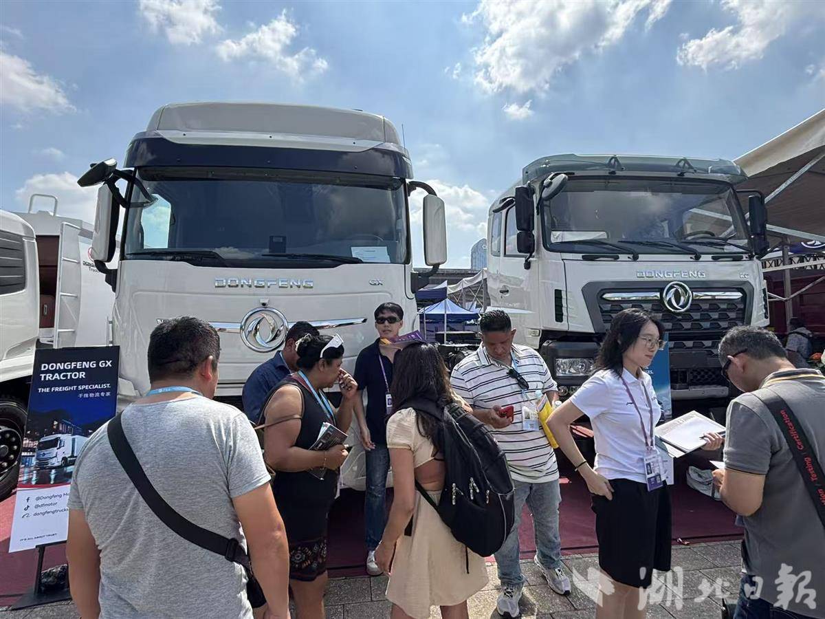 東風汽車展臺吸引海外客商駐足。(圖片來源:省商務廳)
