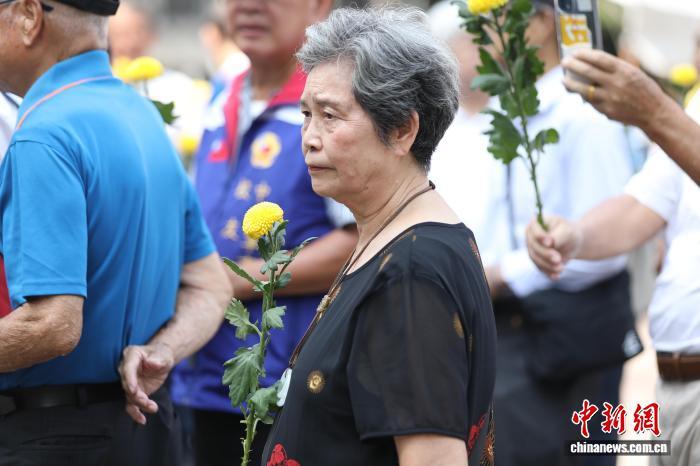 2025年9月3日是抗戰勝利紀念日,臺灣民間團體當天在臺北市中山堂廣場舉行抗戰勝利80周年紀念活動,緬懷先賢的犧牲奉獻,呼吁正視歷史、珍愛和平。圖為臺灣抗日志士羅福星的孫女羅秋昭出席活動,向抗戰中犧牲的軍民同胞敬獻鮮花。記者 朱賀 攝