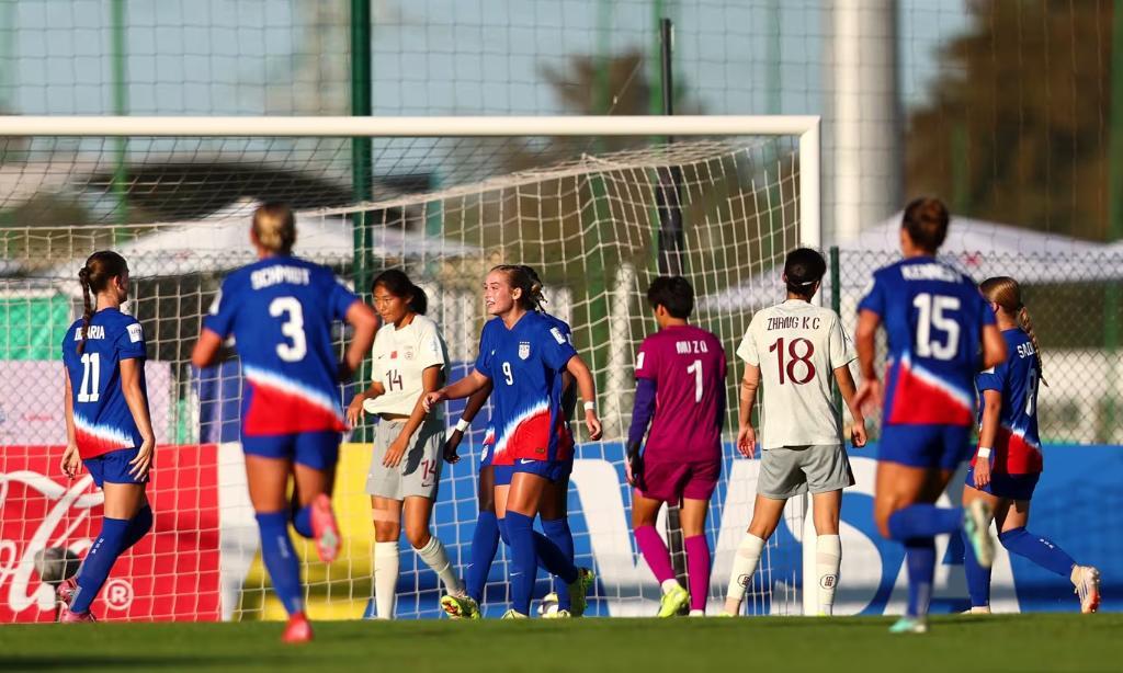 易邊再戰,圖雷和馬爾索姆分別在第62分鐘和第68分鐘各進一球,美國隊進一步擴大領先優勢。第85分鐘,曾屹婕禁區前任意球直接得分扳回一球,但中國隊此后未能進一步縮小分差。