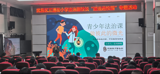 課堂上,沈琦律師結合青少年的學習生活實際,通過案例、問答等方式,講授了未成年人保護的內容與原則。圍繞校園霸凌等熱點話題,深入剖析了未成年人犯罪動機與后果。引導青少年增強自我保護意識、自覺樹立正確法治觀念,從而做到識別與遠離犯罪行為。“大家要爭做知法守法的小公民,在保護好自己的同時,勇敢地對違法行為說“不”,用智慧和善意去幫助身邊的人,做彼此生命中的“微光””。