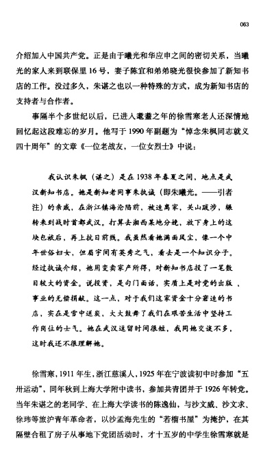 老共產黨員徐雪寒曾在回憶文章中佐證了這段歷史,他寫道:“她雖然滿面風塵,像一個中年世俗婦女,但眉宇間有英秀之氣,看去是一個知識分子……”他特別提到,朱楓的捐贈實為對黨的出版事業的無償奉獻,“大大鼓舞了我們在艱苦生活中堅持工作的士氣”。