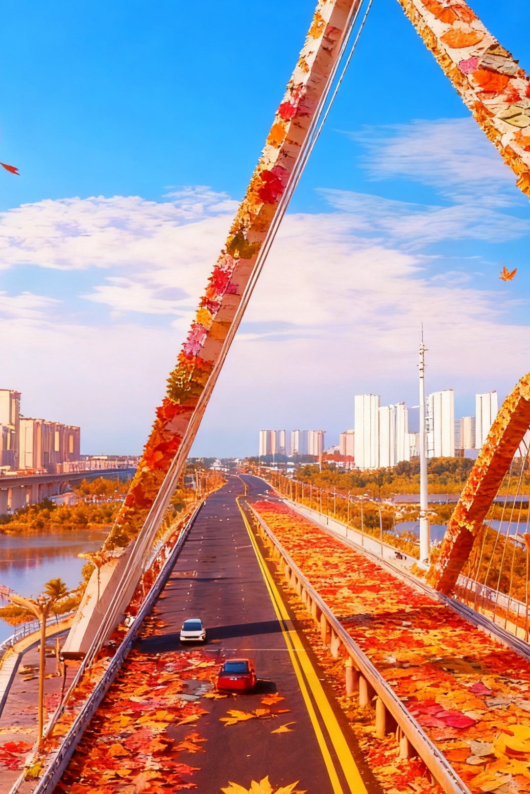 這座跨湖通道,是連接光谷與葛店的要道,更是武鄂交通同網的關鍵節點,秋日里,駕車行駛于此,可見湖光與兩岸秋色共成一景。