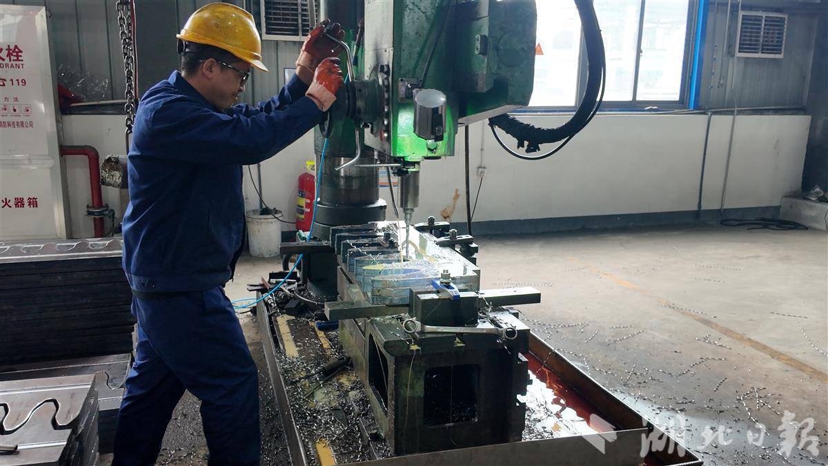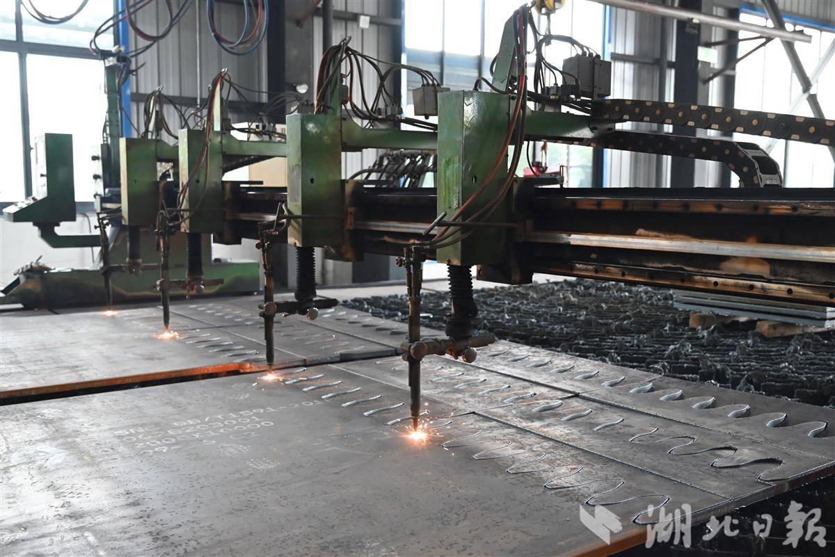 10月22日,走進該集團鄂州產業園,伸縮縫車間一派忙碌,數控機床正切割、打磨鋼板,不久,一套265公斤重的伸縮縫裝置出爐。這個車間一天能生產10套。“這是梳齒板式伸縮縫裝置,具有漸變式的梳齒板,形成3-5度的坡度,能夠緩解行車時輪胎與鋼板的摩擦聲,里面還配有集水袋、倒水板等,能防止異物進入伸縮縫。”湖北交投物流集團致遠公司總經理文俊說。