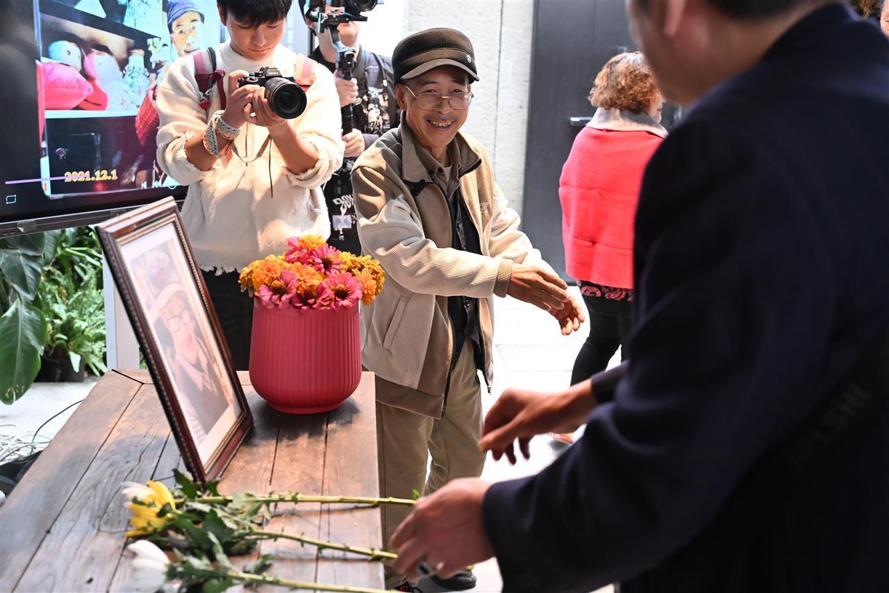 告別儀式最后,四十多名來賓和媒體記者向老周贈送一束菊花,人們和老周擁抱、合影然后離開。
