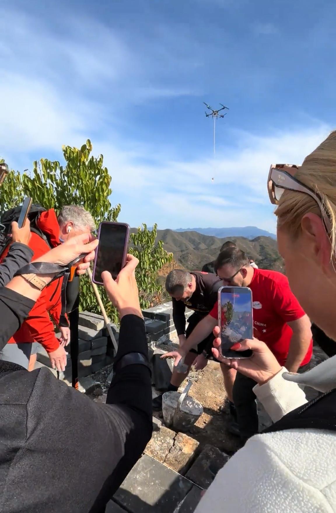 10月21日,有網友發布視頻顯示,一群外國游客在長城游玩時,遇到無人機吊運材料到維修長城的工地,紛紛掏出手機拍攝,還有一老外體驗修長城,將其中一塊青磚鋪在地面上,引來陣陣喝彩。