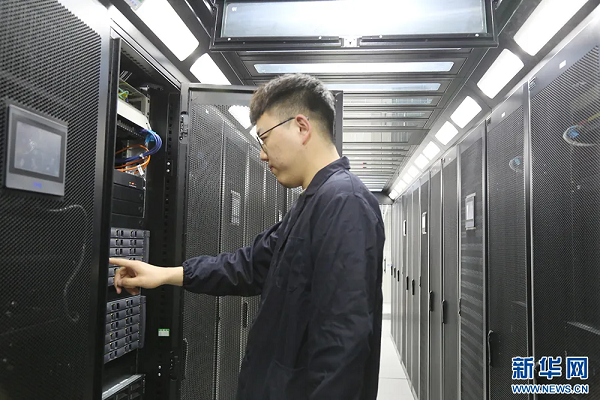 陜西灃東新城智能計算中心工作人員對設備進行日常檢查。新華網