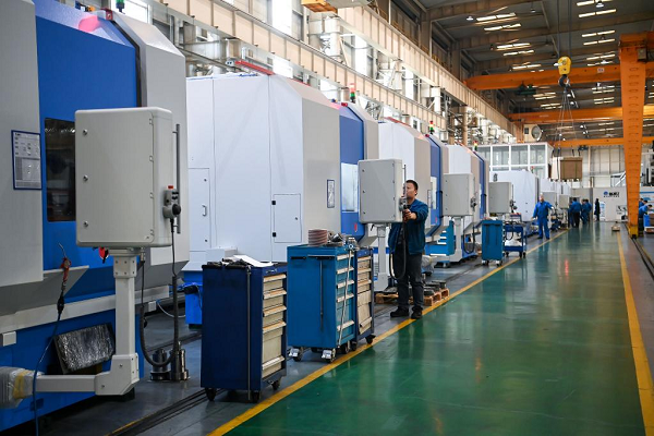 工作人員在陜西寶雞的一家公司調試數控機床。圖源:新華社