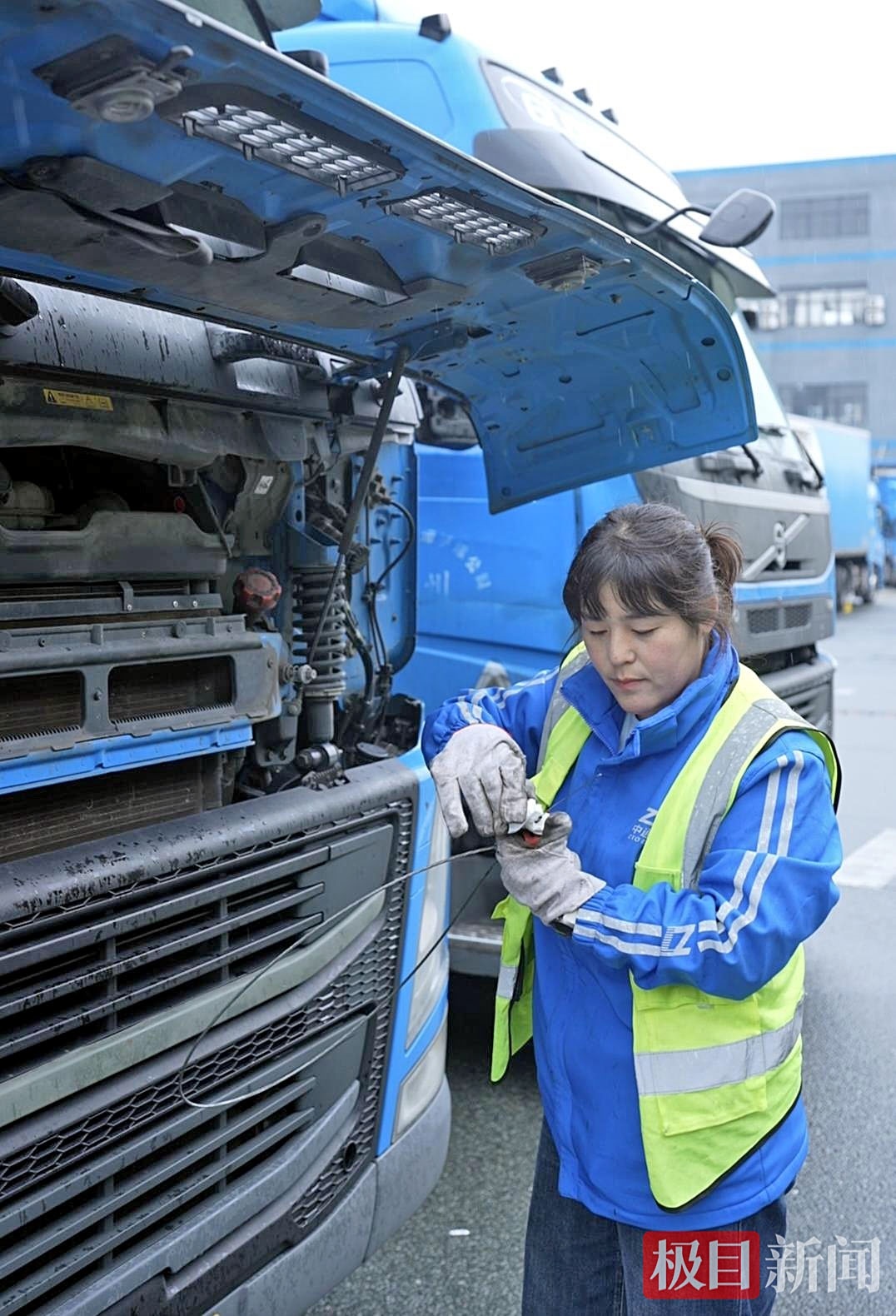 10月21日清晨,一輛21米長的重型卡車旁,扎著馬尾、身穿藍色工裝的90后女司機李雙雙利落地拉開厚重車門,兩步跨上1.4米高的駕駛室,系安全帶、啟動發動機,動作一氣呵成。作為中通湖北車隊的短途干線駕駛員,她在三年多的時間里累計行駛40多萬公里,相當于繞地球約10圈,始終保持零事故記錄。