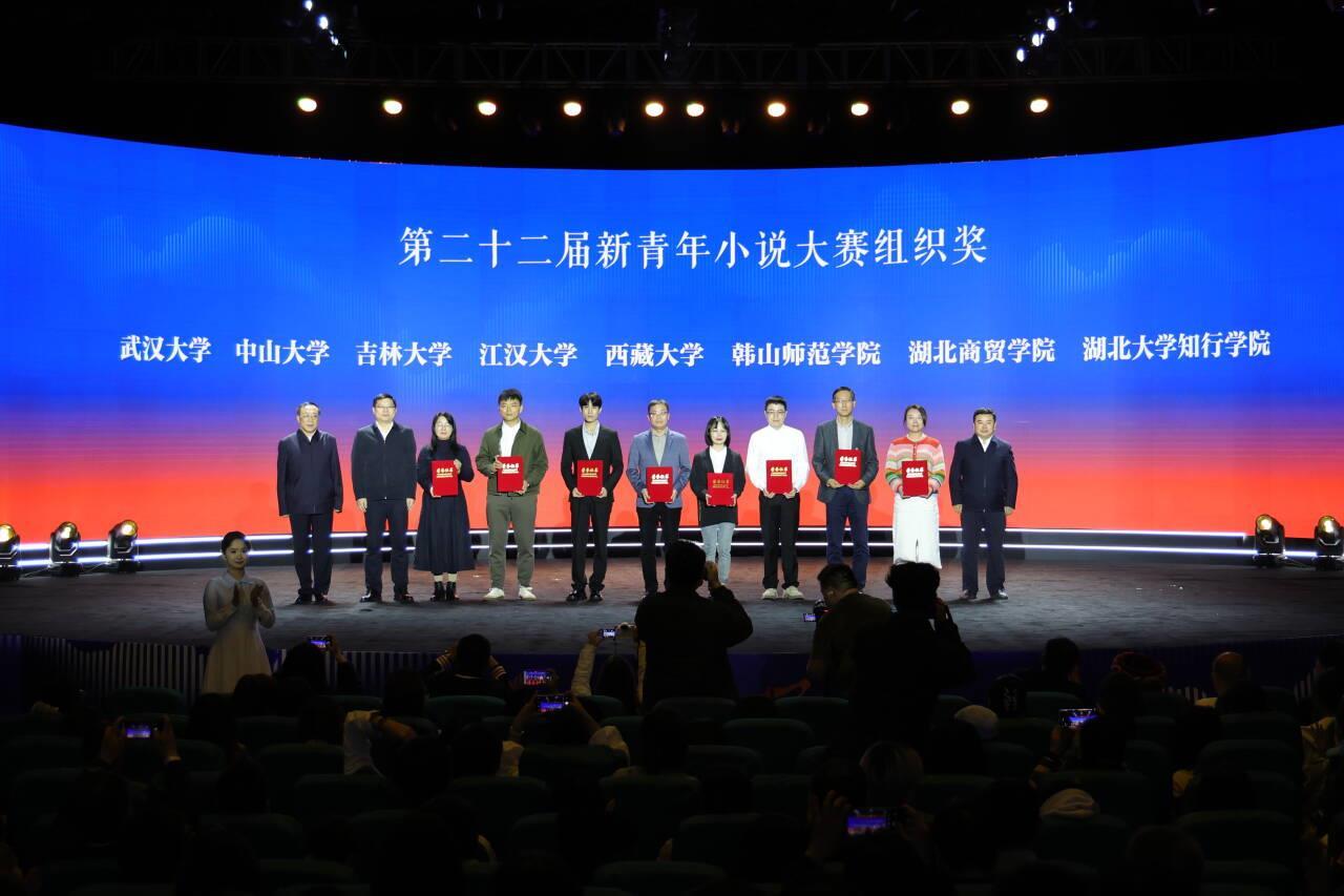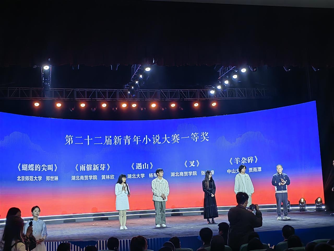 晚會現場,發布了由湖北省作家協會、湖北省學生聯合會和湖北大學聯合主辦的第二十二屆新青年小說大賽一、二、三等獎名單。第二十二屆新青年小說大賽共征得稿件352篇,經評審,北京師范大學鄭世琳《蝴蝶的尖叫》等5篇作品榮獲一等獎,8篇作品榮獲二等獎,10篇作品榮獲三等獎;武漢大學等8所高校獲“優秀組織獎”,吳昊琳等8位教師獲“優秀指導教師”稱號。