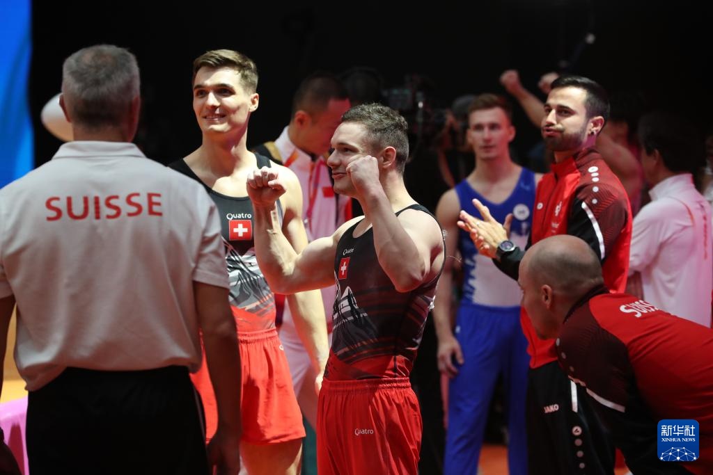 10月22日,瑞士選手塞菲爾特在男子個(gè)人全能決賽單杠項(xiàng)目比賽后。