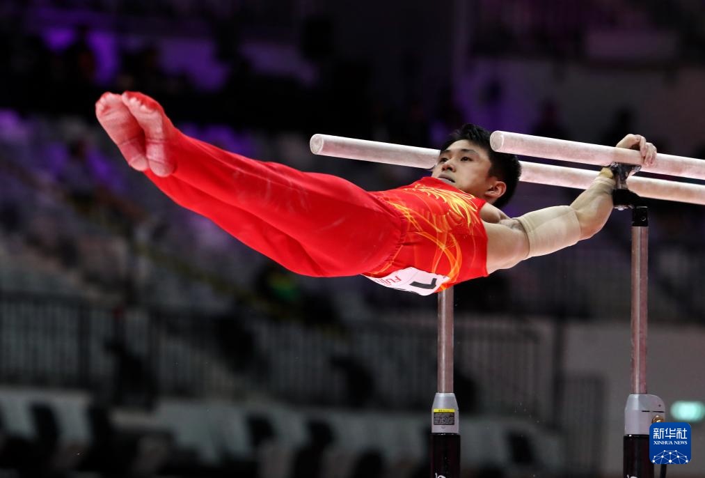10月22日,中國選手侍聰在男子個(gè)人全能決賽雙杠項(xiàng)目比賽中。最終,他獲得第四名。