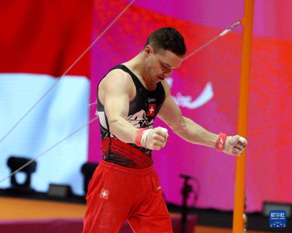 10月22日,瑞士選手塞菲爾特在男子個(gè)人全能決賽單杠項(xiàng)目比賽中。