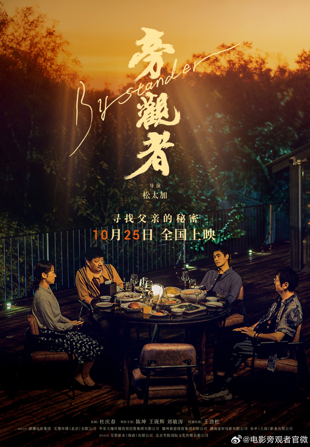 《旁觀者》講述離家16年的陳家輝(陳坤飾)因父親陳為民(王勁松飾)病危重返故鄉,在與哥哥陳家興(王硯輝飾)、姐姐陳家媛(劉敏濤飾)重聚后,通過探尋父親生活軌跡揭開家庭隱藏多年的秘密,最終直面父子間未解心結的故事。