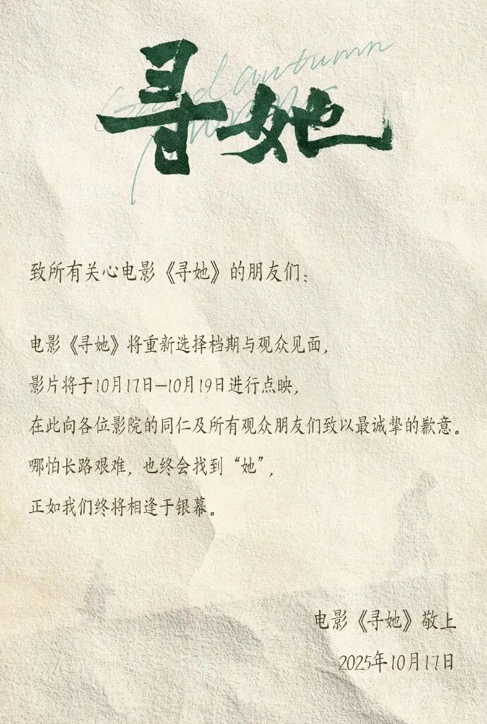 值得關注的是,就在6天前,舒淇主演的電影《尋她》也已發布通知將重新選擇檔期與觀眾見面。(舒淇白客主演電影《尋她》上映1天撤檔:將重新擇檔,截至目前累計票房15.8萬)