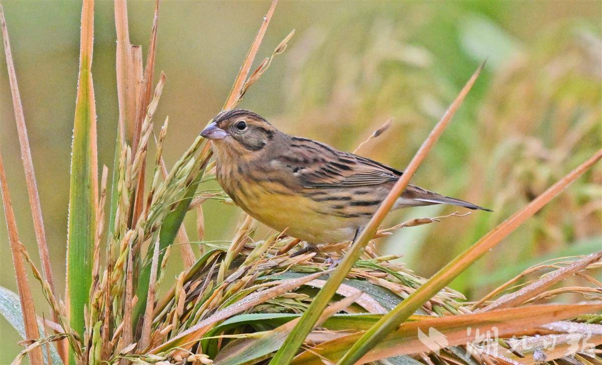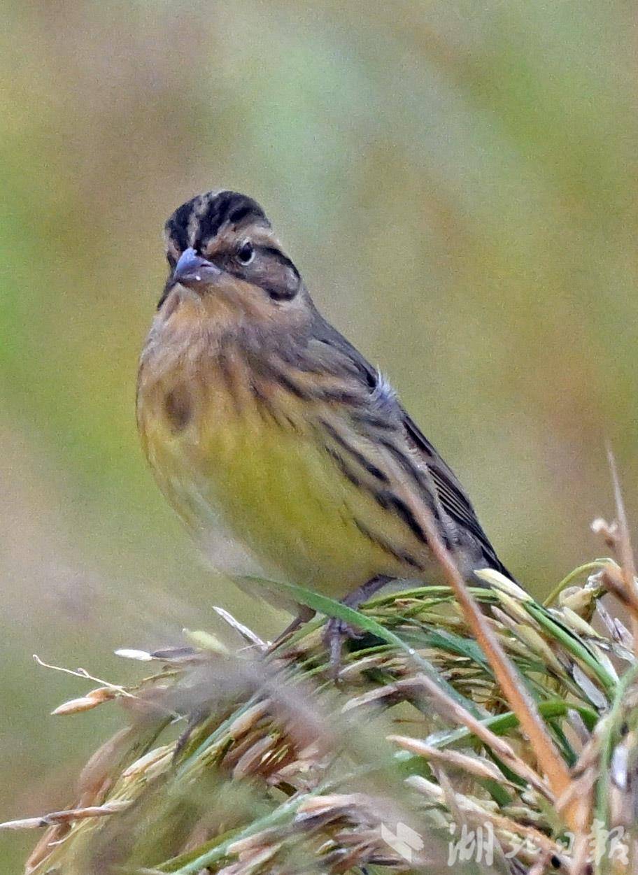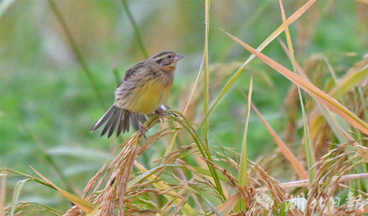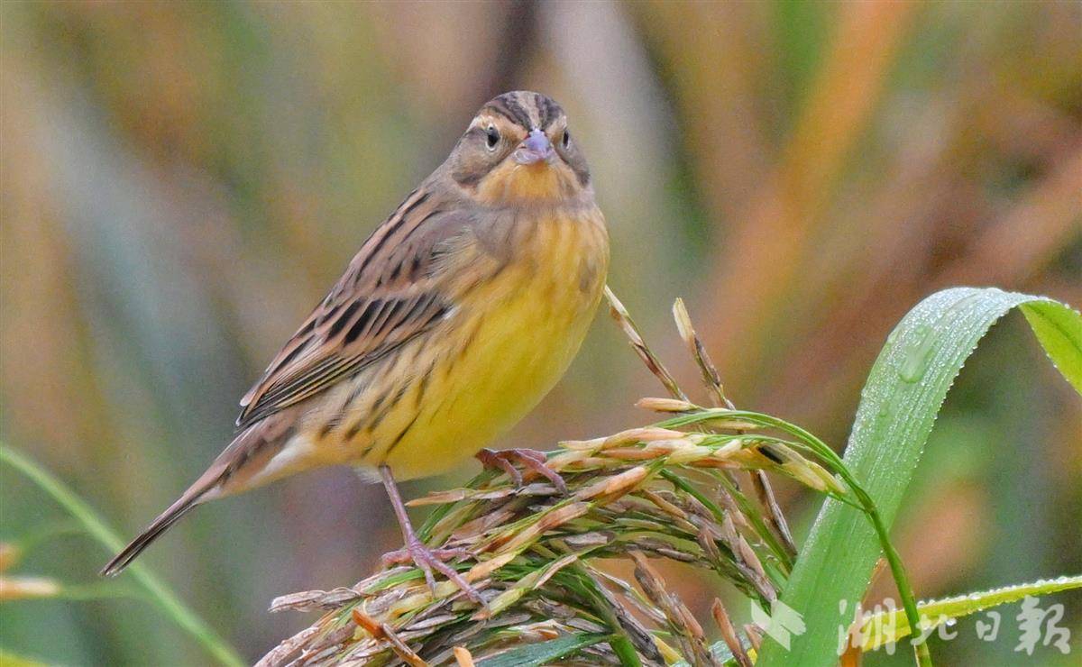 10月23日,記者于宜昌市卷橋河濕地一片觀賞性稻田中,拍攝到國家一級重點保護野生鳥類——黃胸鹀(俗稱“禾花雀”)。該鳥屬于典型的河谷草甸灌叢草地鳥類。黃胸鹀于2017年被世界自然保護聯盟提升為“極危”等級,2021年起被正式列為中國國家一級重點保護野生動物。近年來,宜昌市持續推進濕地生態保護與修復,全市濕地面積達8.24萬公頃。卷橋河濕地通過植物修復、生物清淤及自然護坡等措施,重構了健康穩定的岸線生態系統,該濕地已連續四年觀測到成群的黃胸鹀在遷徙途中經停此地。(湖北日報全媒記者 劉曙松 攝)