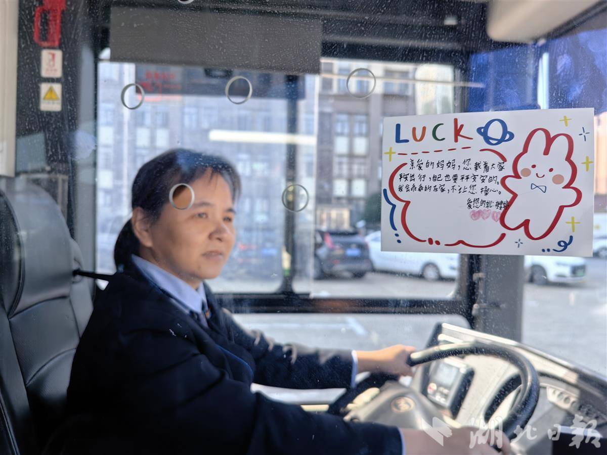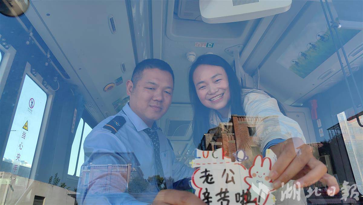 湖北日報訊(記者黃潔如、通訊員萬建國、劉亭、楊夢怡)“老公,上班辛苦了,要平安呦!”10月23日上午,武漢黃陂盤龍城奧特西街公交樞紐站公交290路,司機段旭坤拿著妻子寫給他的這張“親情寄語卡”,張貼到2328號車駕駛室醒目位置。