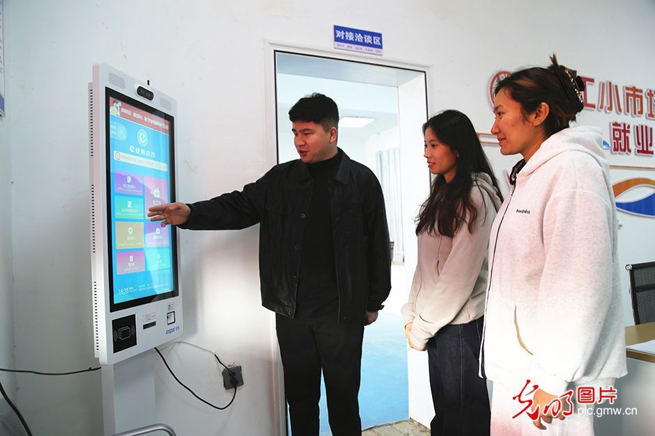 新疆阿克蘇地區(qū)阿瓦提縣人社局舉辦2025年金秋招聘月專場(chǎng)招聘會(huì),來(lái)自紡織、商場(chǎng)、人壽、酒店、文旅等行業(yè)的30家民營(yíng)企業(yè)提供420個(gè)就業(yè)崗位,吸引了許多求職者前來(lái)應(yīng)聘。圖為工作人員正在向求職者介紹崗位信息。(包良廷攝/光明圖片)
