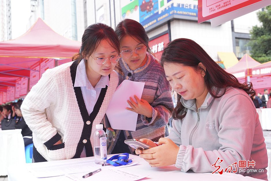 重慶市北碚區(qū)人力社保局啟動(dòng)2025年金秋招聘月活動(dòng),邀請(qǐng)100多家來(lái)自裝備制造、新能源、數(shù)字信息、現(xiàn)代服務(wù)等企業(yè)參與,為求職者提供就業(yè)崗位近2000個(gè),促進(jìn)勞動(dòng)者就近就地就業(yè),助力企業(yè)發(fā)展。圖為求職者在了企業(yè)用工信息。(秦廷富攝/光明圖片)
