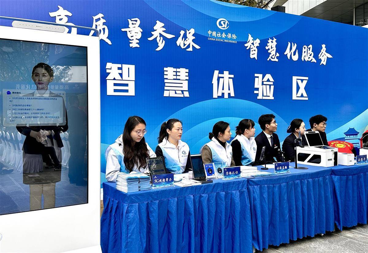 活動現場,市民還能體驗AI智能客服、5G視頻幫辦、資格認證“碰一下”、工傷VR場景等智慧服務。在智慧體驗區,工作人員正在引導現場市民與AI智能機器人對話。“AI終端支持語音交互,可快速反饋參保流程與所需材料,市民辦理社保更加精準快捷。”社保講解員祁曉業說。