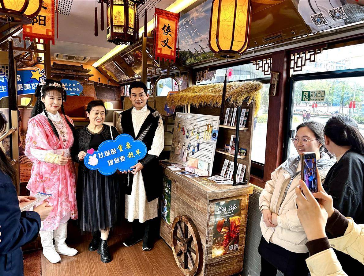湖北日報全媒記者走進“俠義主題公交”改造的“社保客廳”,畢業求職、返鄉創業、社保政策等宣傳資料有序擺放,“郭靖”“黃蓉”變身社保宣傳員與市民互動交流。一旁的社保規劃師正為靈活就業人員答疑解惑,量身定制參保方案。