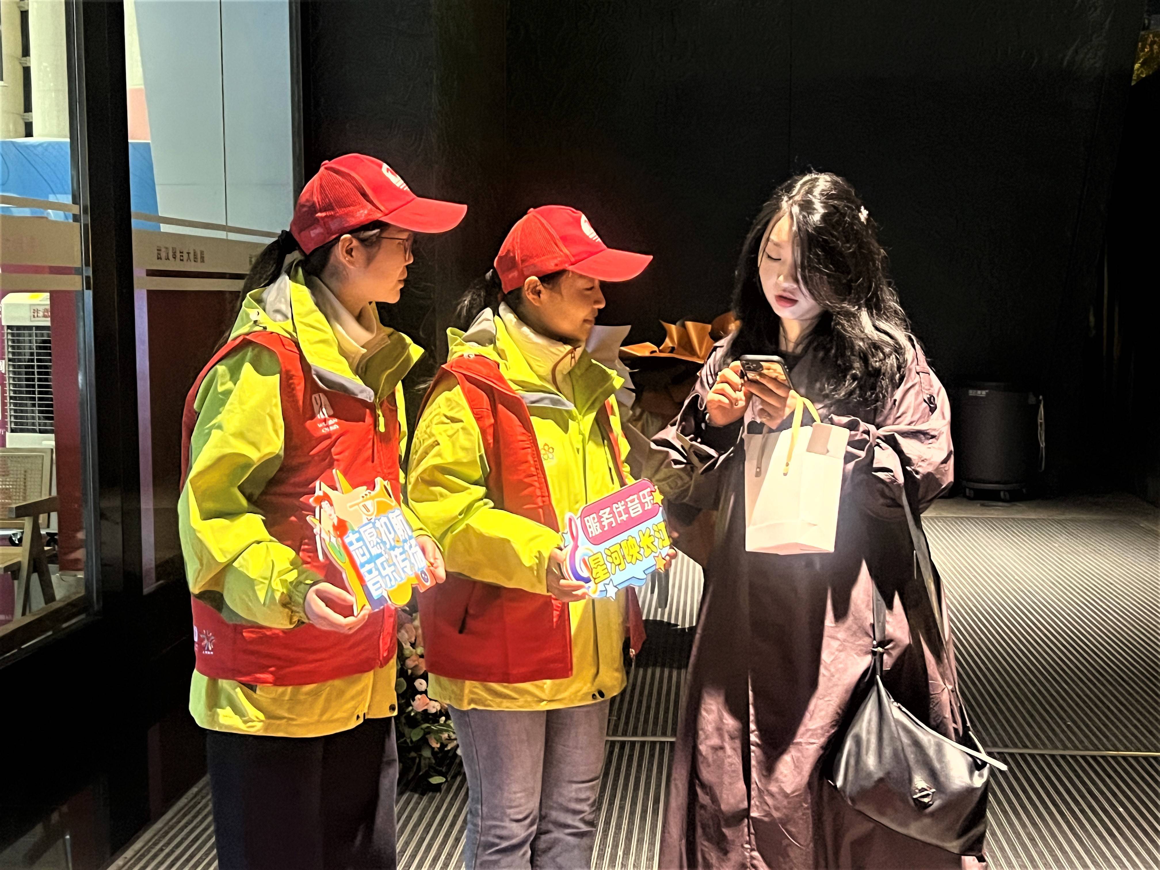 為了做好當(dāng)晚的服務(wù),作為武漢音樂學(xué)院音樂學(xué)系研究生的他們,提前研讀原著背景、熟悉劇場動線。“用自己的專業(yè)所長服務(wù)藝術(shù)盛宴,還在和觀眾的交流中更深刻地理解了經(jīng)典作品的魅力,這不僅是一次服務(wù),更是一次難得的學(xué)習(xí)和陶冶,既展示了當(dāng)代大學(xué)生的青春風(fēng)貌,也為武漢這座城市傳遞了一份獨(dú)特的溫暖,感覺十分有意義!”志愿者姜碧柔說。