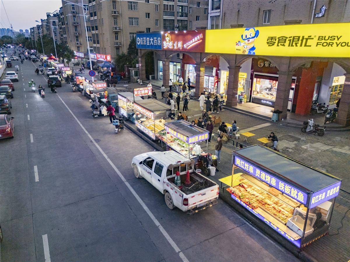這片自發形成的夜市攤點長約260米,匯聚了50余家固定攤位。周邊環繞著萬達廣場等商業綜合體及多個大型居民區,旺盛的消費需求使其充滿活力,但也帶來了交通擁堵、地面油污等突出的“城市病”。