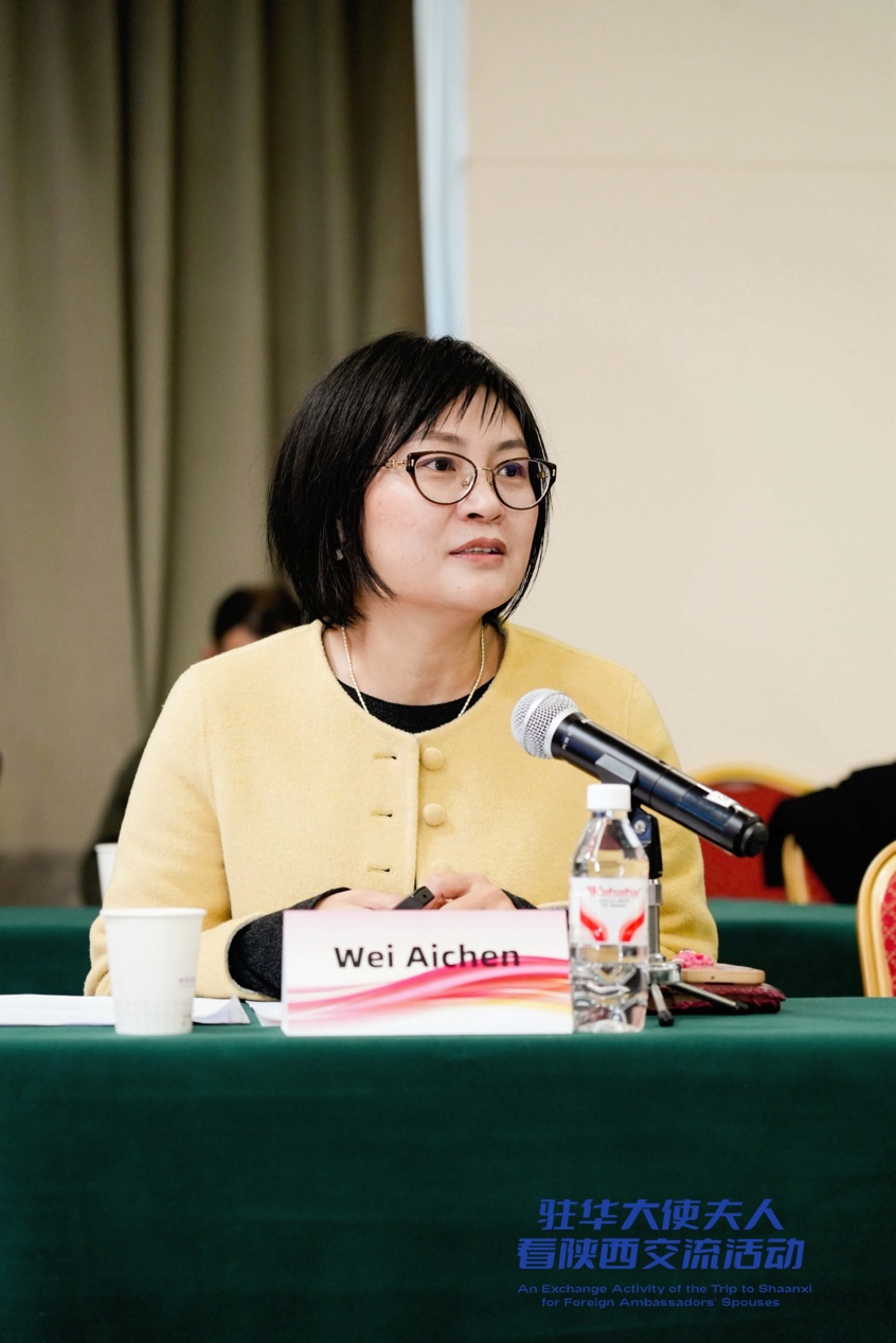 王玉娥的分享為駐華大使夫人打開了陜西婦女事業的“全景圖”,女性代表、西安宏源視訊設備有限責任公司CEO黃姍姍,“愛心媽媽”代表、西安市蓮湖區艾樂生社會工作服務中心主任韋艾辰的發言,則是這幅圖景中最鮮活的“特寫鏡頭”。