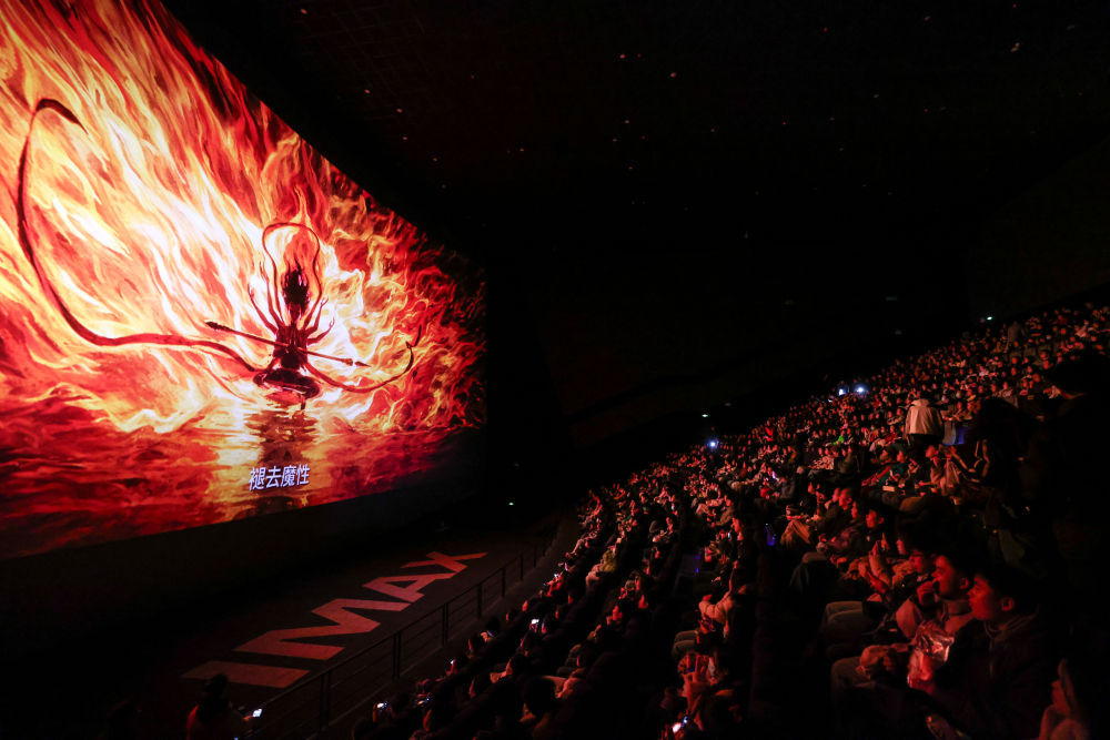 2025年2月25日,觀眾在貴州省貴陽越界影城IMAX影廳內觀看電影《哪吒2》。新華社記者 歐東衢 攝