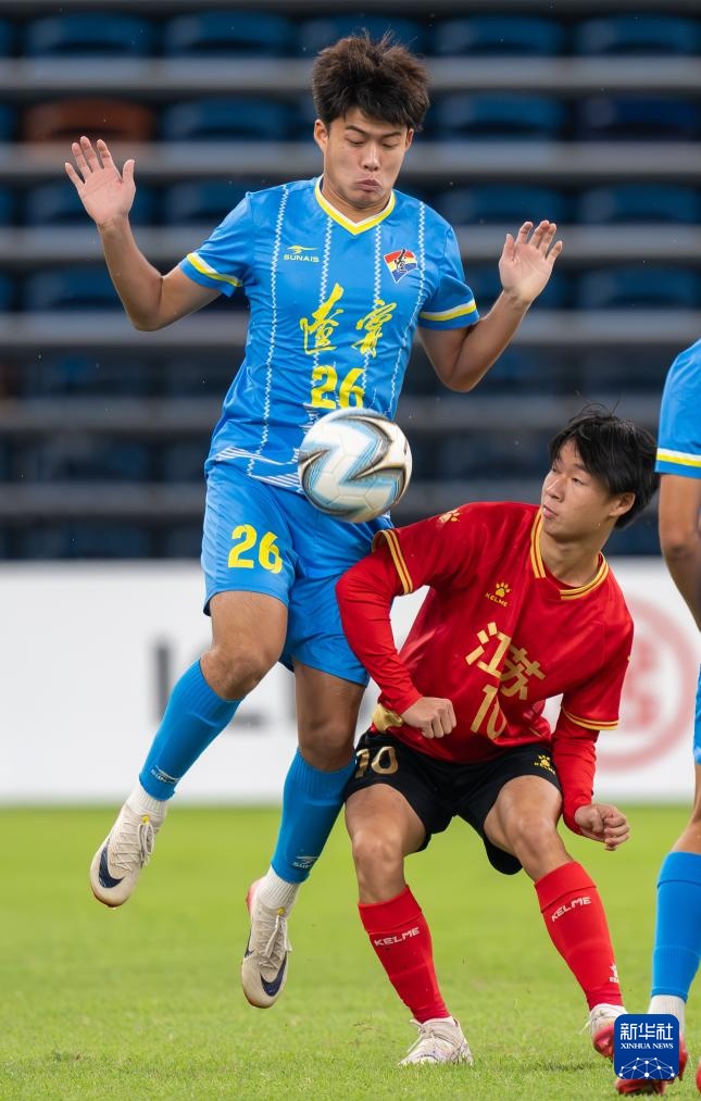 10月23日,遼寧隊球員吳明嶼(左)與江蘇隊球員唐曾琦在比賽中爭頂。