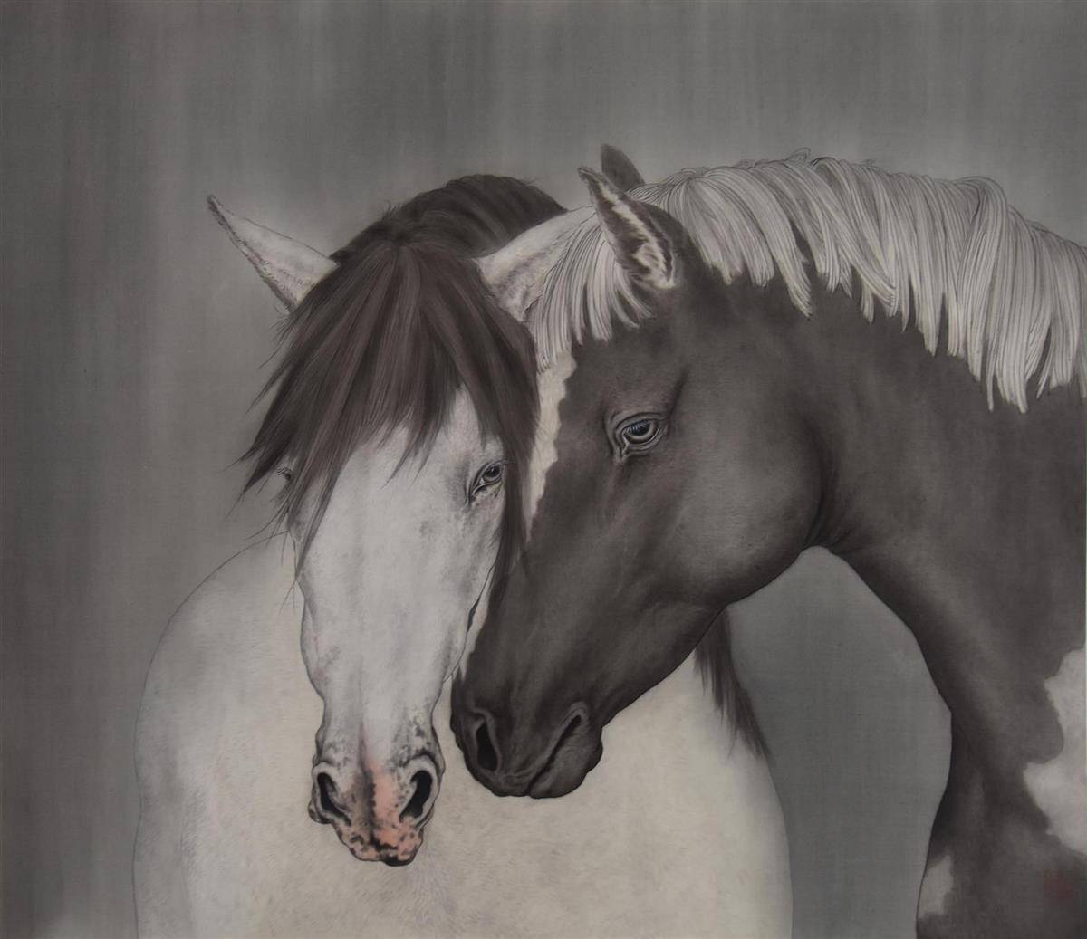 高梽根 依偎 65cm×75cm 國畫 絹本水墨 2024 四川美術(shù)學(xué)院