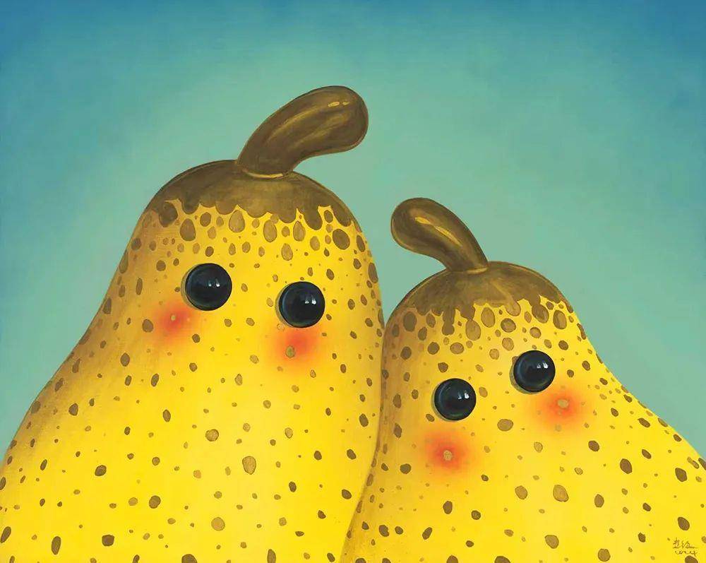 多巴胺色彩近年來風(fēng)靡社會,以其鮮艷、明亮的色調(diào)帶來視覺和情感上的愉悅。《永不分梨》是山東籍當(dāng)代潮流藝術(shù)家張超級以水果為載體創(chuàng)作的布面丙烯系列作品。該系列通過梨、火龍果等水果意象傳遞溫暖治愈的情感,踐行藝術(shù)家”食物總能帶給人慰藉和安全感”的創(chuàng)作理念。作品運用非凡洋紅與嫩綠色形成強烈視覺對比,具有鮮明的潮流藝術(shù)特征,其IP形象已被國內(nèi)外藝術(shù)機構(gòu)收藏。