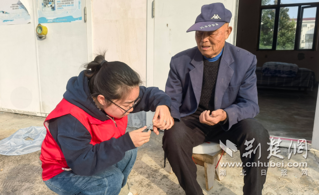 青年志愿服務(wù)隊(duì)的成員們化身“貼心小棉襖”,有的為老人精心修剪發(fā)型,有的則細(xì)心地為老人修剪指甲。同時(shí),他們還將事先準(zhǔn)備好的面包、餅干等慰問品一一送到老人手中,讓這份甜蜜與溫暖在老人心間流淌。