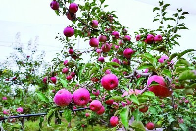 四面通紅,不僅比普通蘋果高出1~2個糖度,并且抗氧化能力強,一公斤能賣到20元……