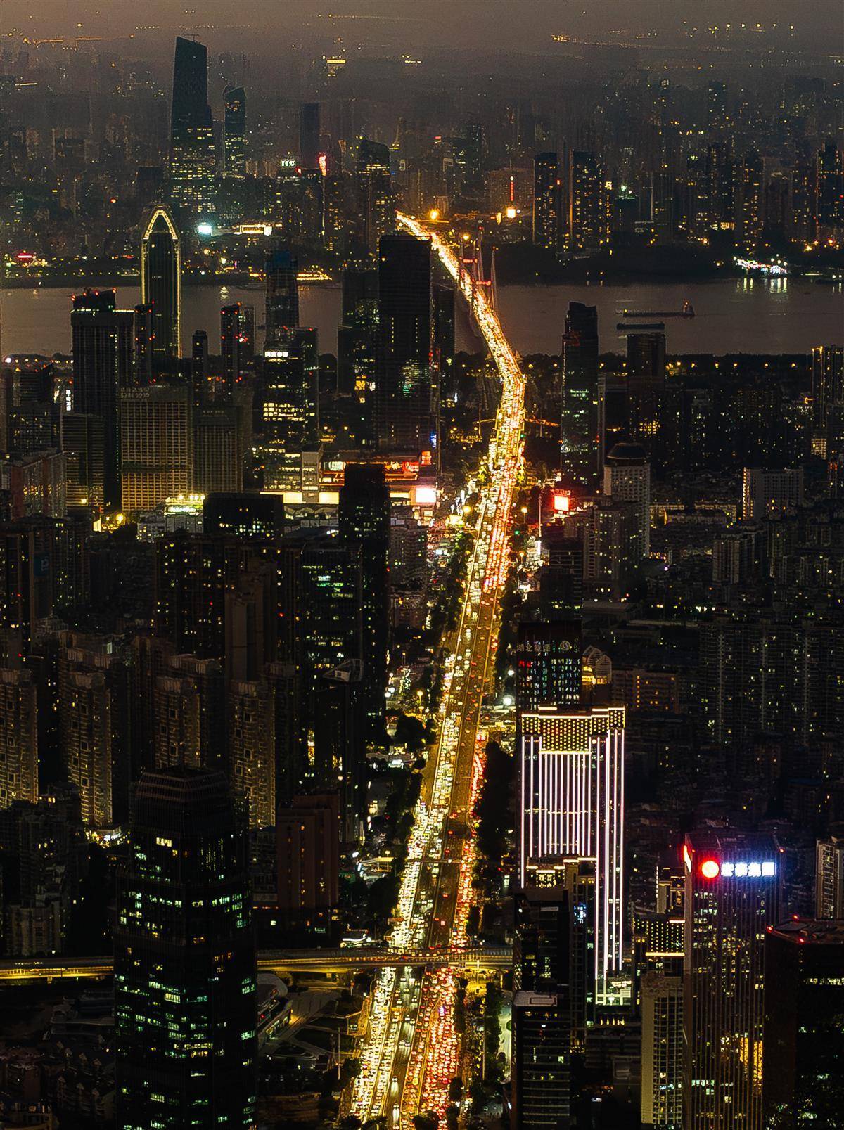 10月24日傍晚,武漢二環線上車水馬龍。(湖北日報全媒記者 柯皓 攝)