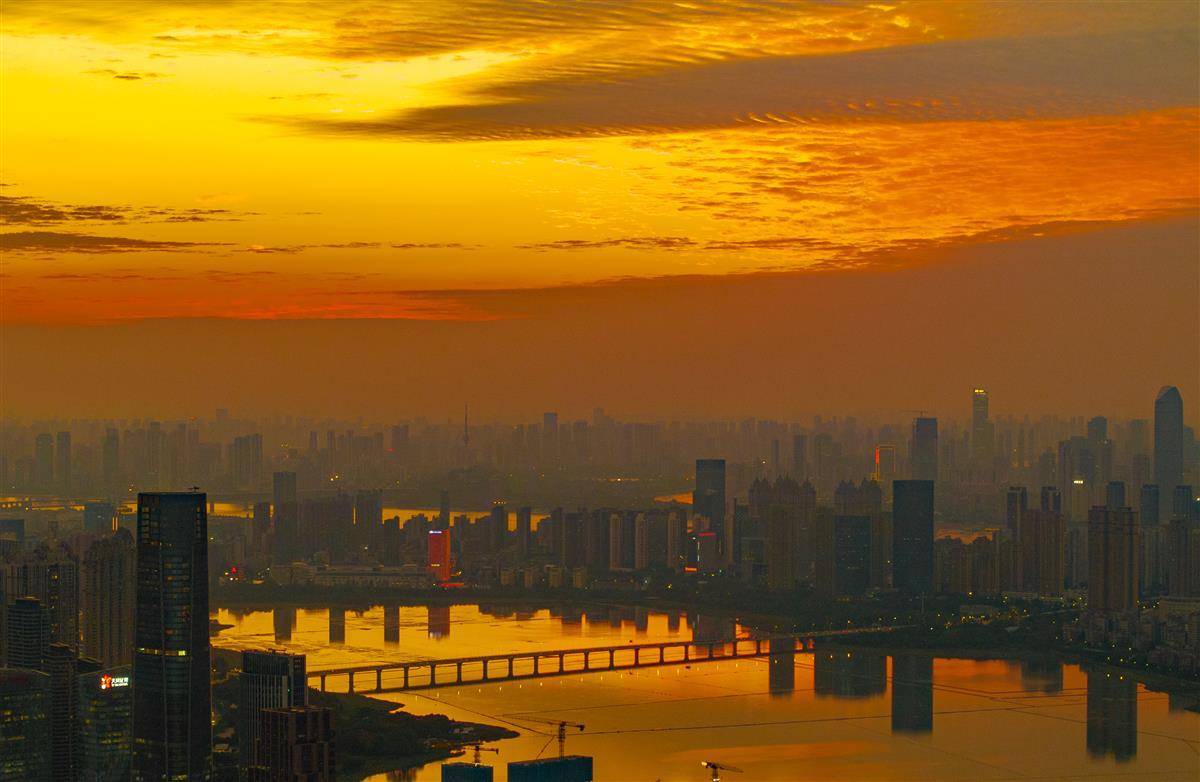 10月24日傍晚,武漢上空現絕美晚霞。(湖北日報全媒記者 柯皓 攝)