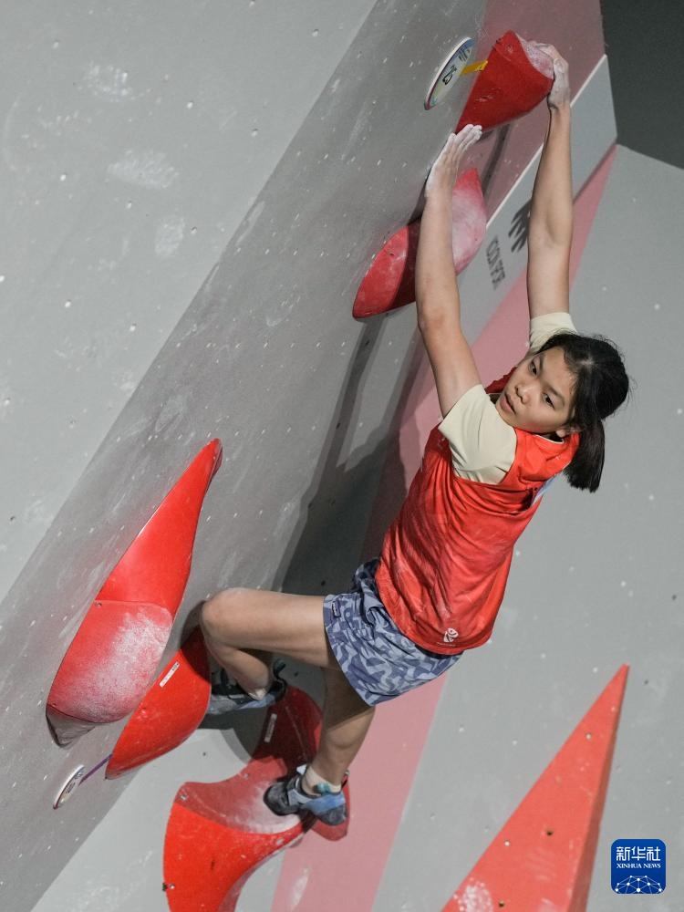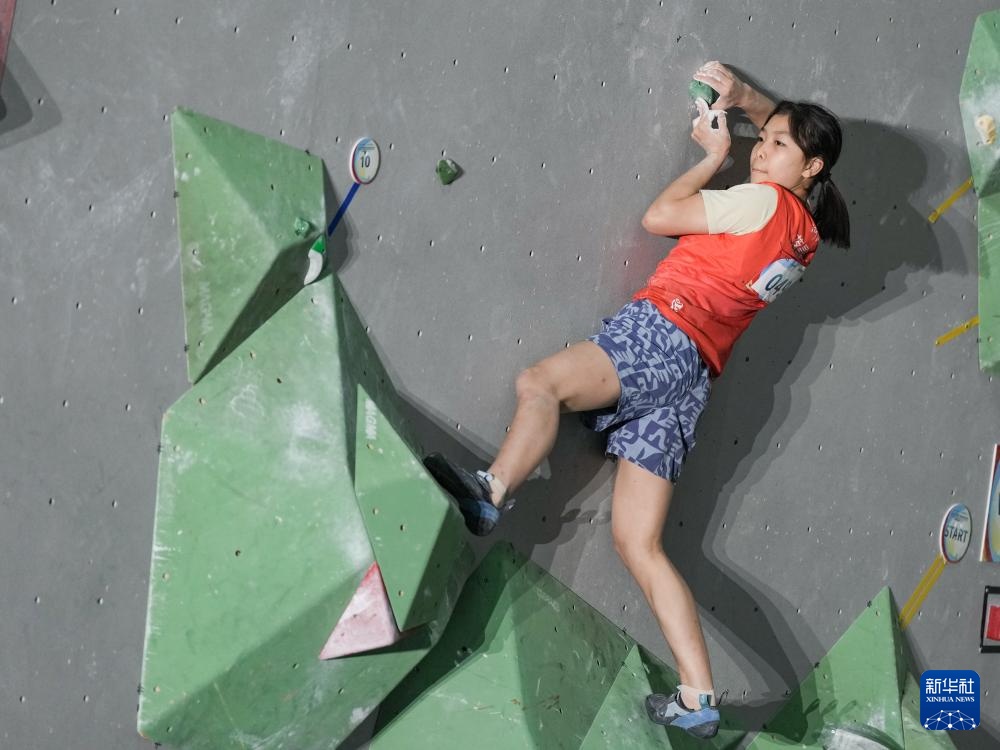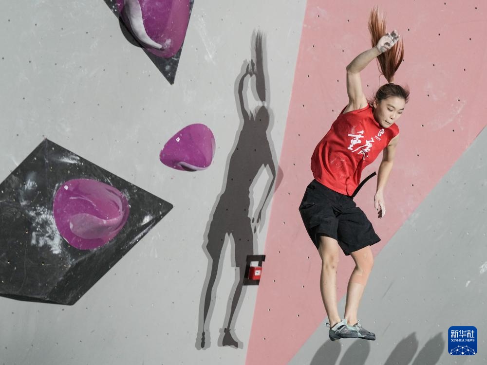 10月24日,重慶市攀巖隊(duì)選手李婧瑜在比賽中。最終,她獲得亞軍。