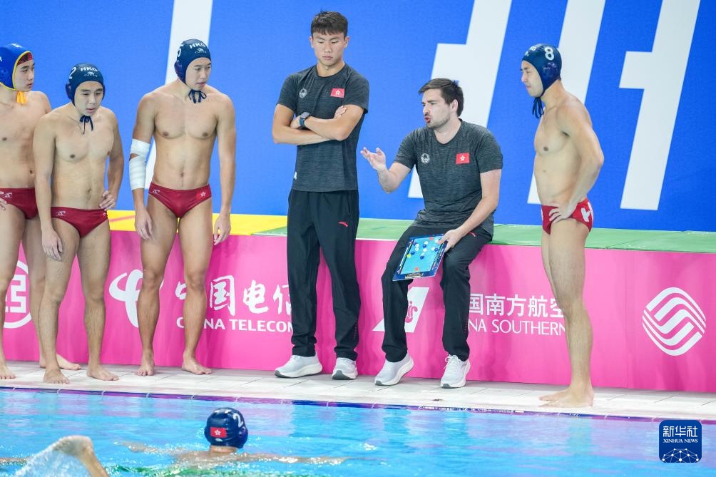 10月24日,香港隊(duì)主教練基里爾·魯斯塔莫夫(右二)在比賽間隙布置戰(zhàn)術(shù)。