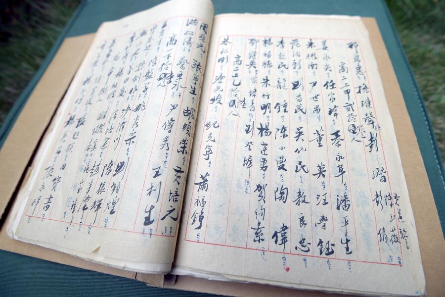 學校檔案《關于學生參干名冊(一九五〇—一九五一年)》上面記錄著陶偉等學生參軍參干的事跡。新華社發(史偉攝)