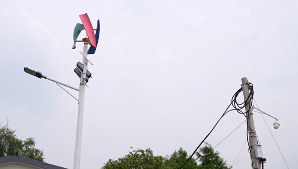 在這里,“綠色”驚喜隨處可見:屋頂、涼亭、桌椅、廣場長廊甚至雞棚豬舍,鋪設著整齊的光伏板;微風發電機與“風車樹”錯落交織,175盞光伏路燈照亮山間夜路;“光儲充一體化”充電站,靠太陽能為新能源汽車充電,讓“零碳”出行落地生根……