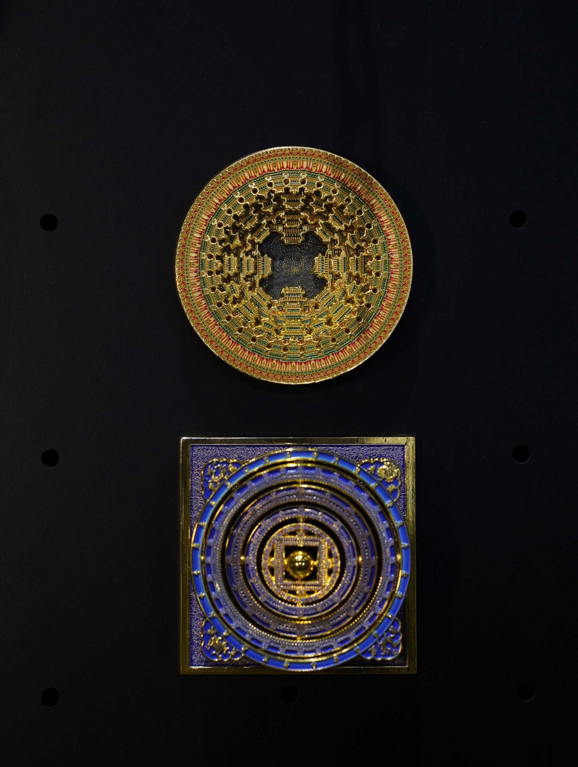 冰箱貼復刻了實物最大的層疊式特點。底層為藍綠色的星空圖樣,加之以夜光工藝;五層立體結構,每一層都可以拆卸,也可以組裝在一起。為了還原彩繪紋樣,增加顏色穩定性和光澤度,表面采用了手工琺瑯描色與玻璃漆上色。由于工序復雜,初始的日產量僅有400個。
