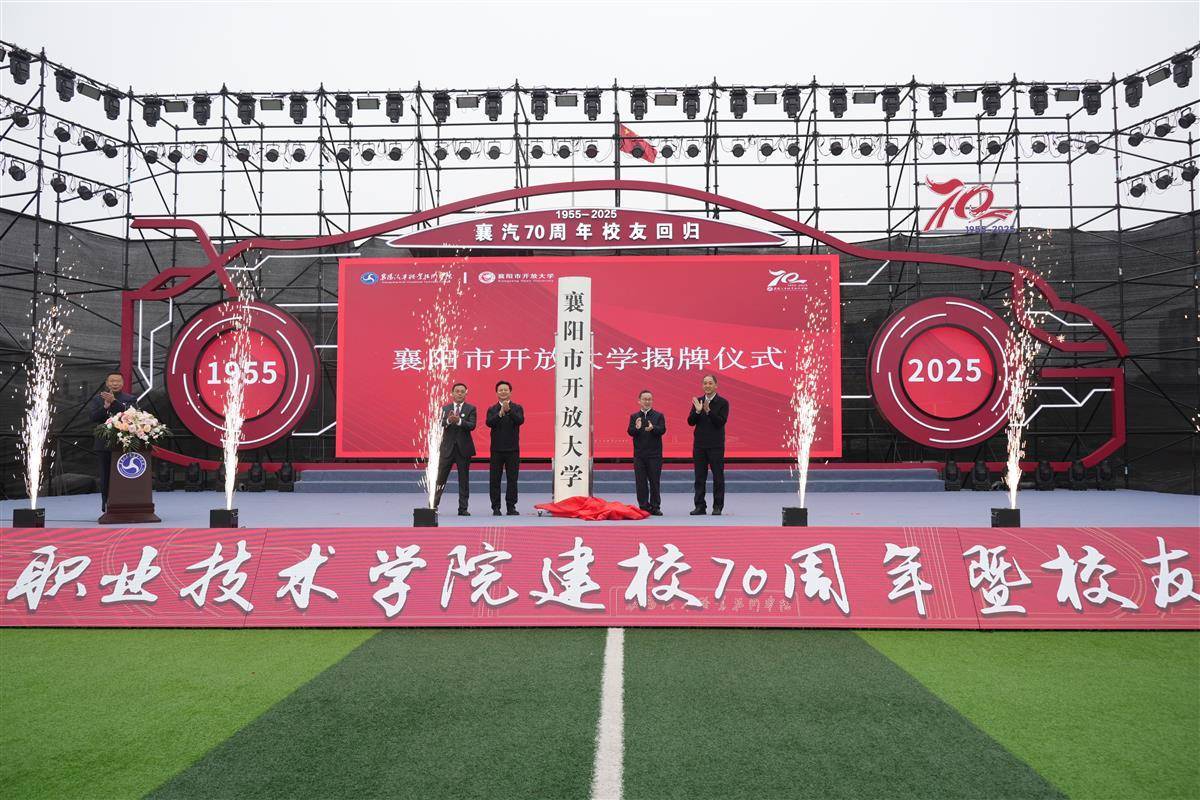 湖北日報訊(記者褚楠、通訊員榮芷穎、彭金玲)10月25日,襄陽汽車職業技術學院迎來建校70周年,同步舉辦校友回歸主題活動。活動現場,襄陽廣播電視大學更名為襄陽市開放大學,并正式揭牌,標志著襄陽在構建終身教育體系、加快學習型社會建設進程中邁入新階段。