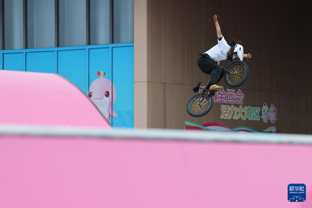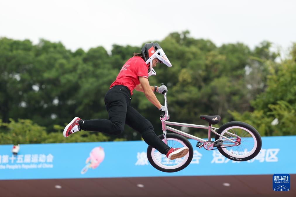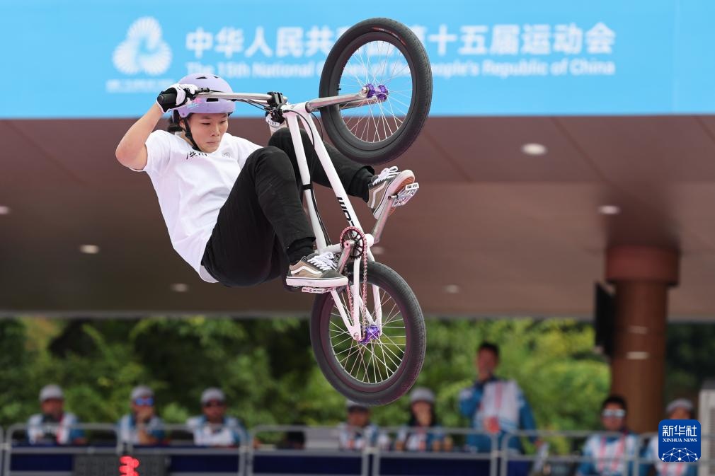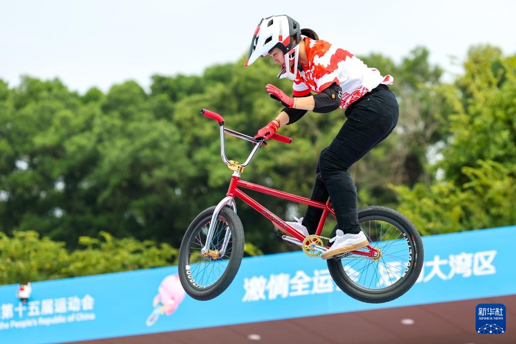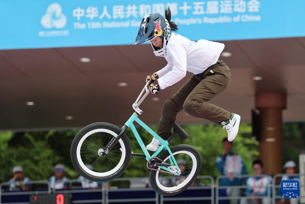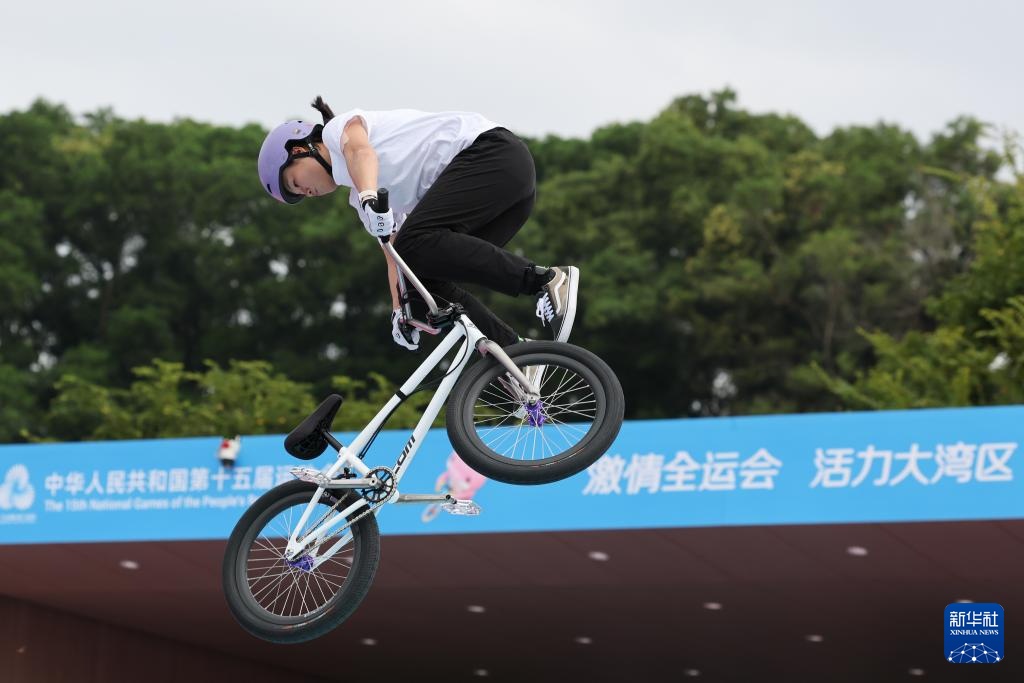 當日,第十五屆全國運動會自由式小輪車女子公園賽決賽在深圳光明區虹橋公園舉行。