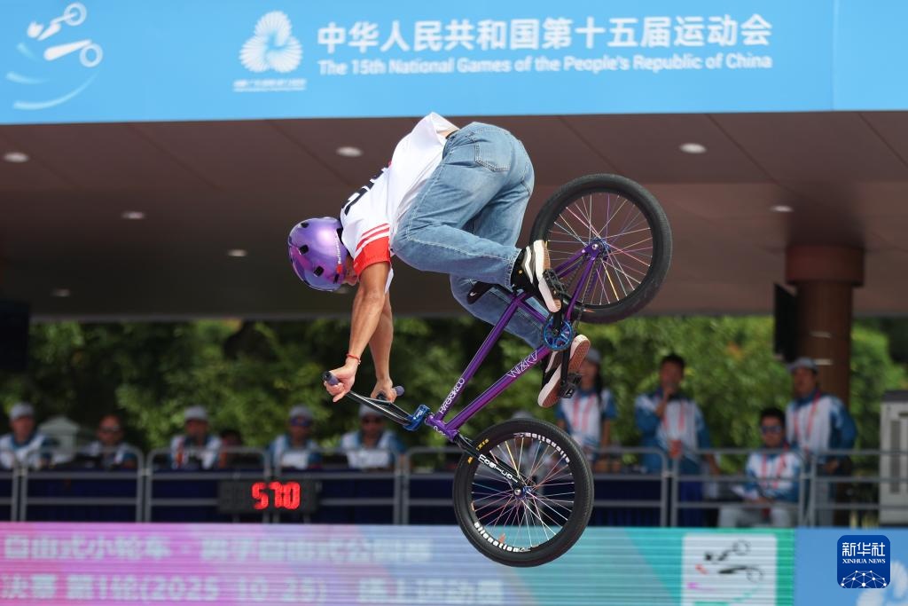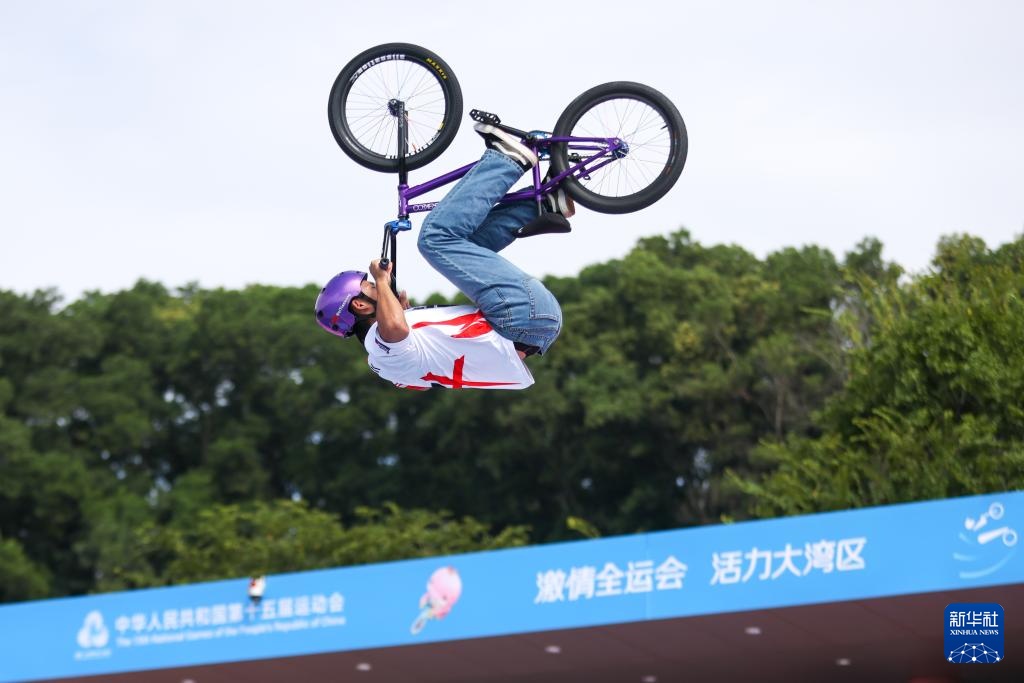 當日,第十五屆全國運動會自由式小輪車男子公園賽決賽在深圳光明區虹橋公園舉行。